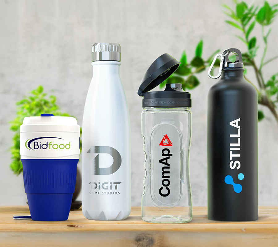 Tumblers, insulated flasks, reusable cups, and bottles — with options for custom colours, laser engraving, and sustainable finishes.