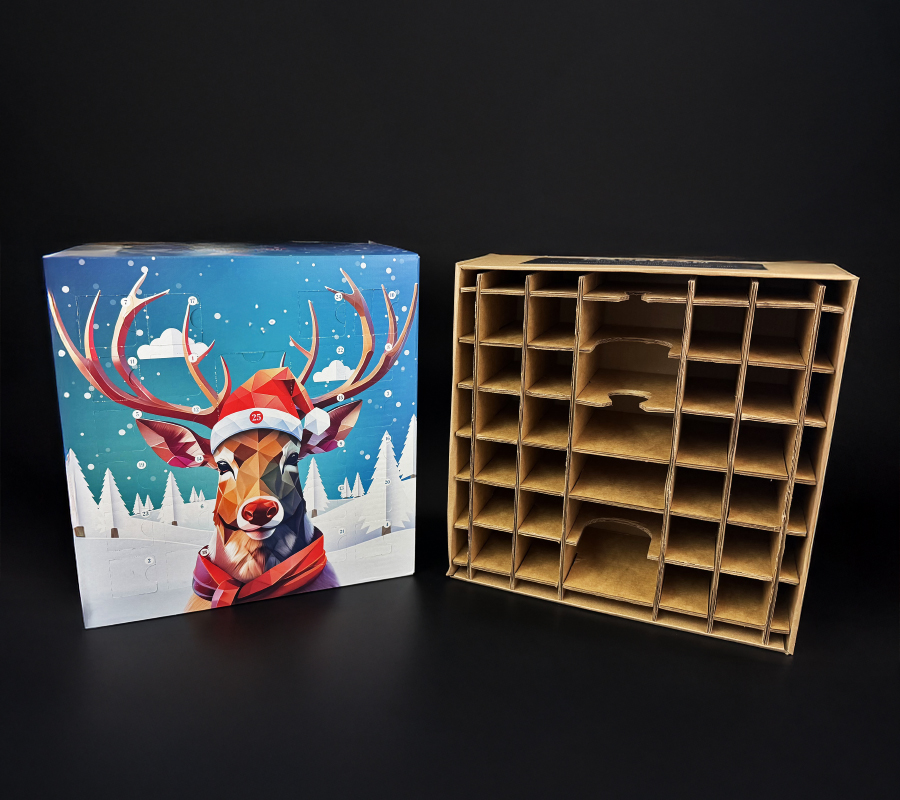 The Reindeer concept was designed with premium bottles in mind, offering an impactful format for wine brands and drinks companies looking to elevate seasonal gifting. A larger feature compartment creates a focal point within the layout, allowing brands to showcase a hero product as part of the experience.